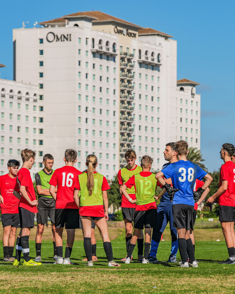 Unlike traditional residential camps, families stay on-site at Omni Resort ChampionsGate while players participate in structured daily training.